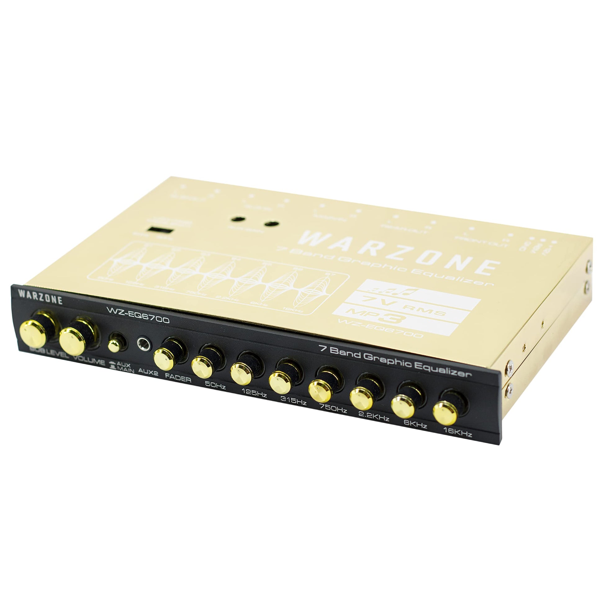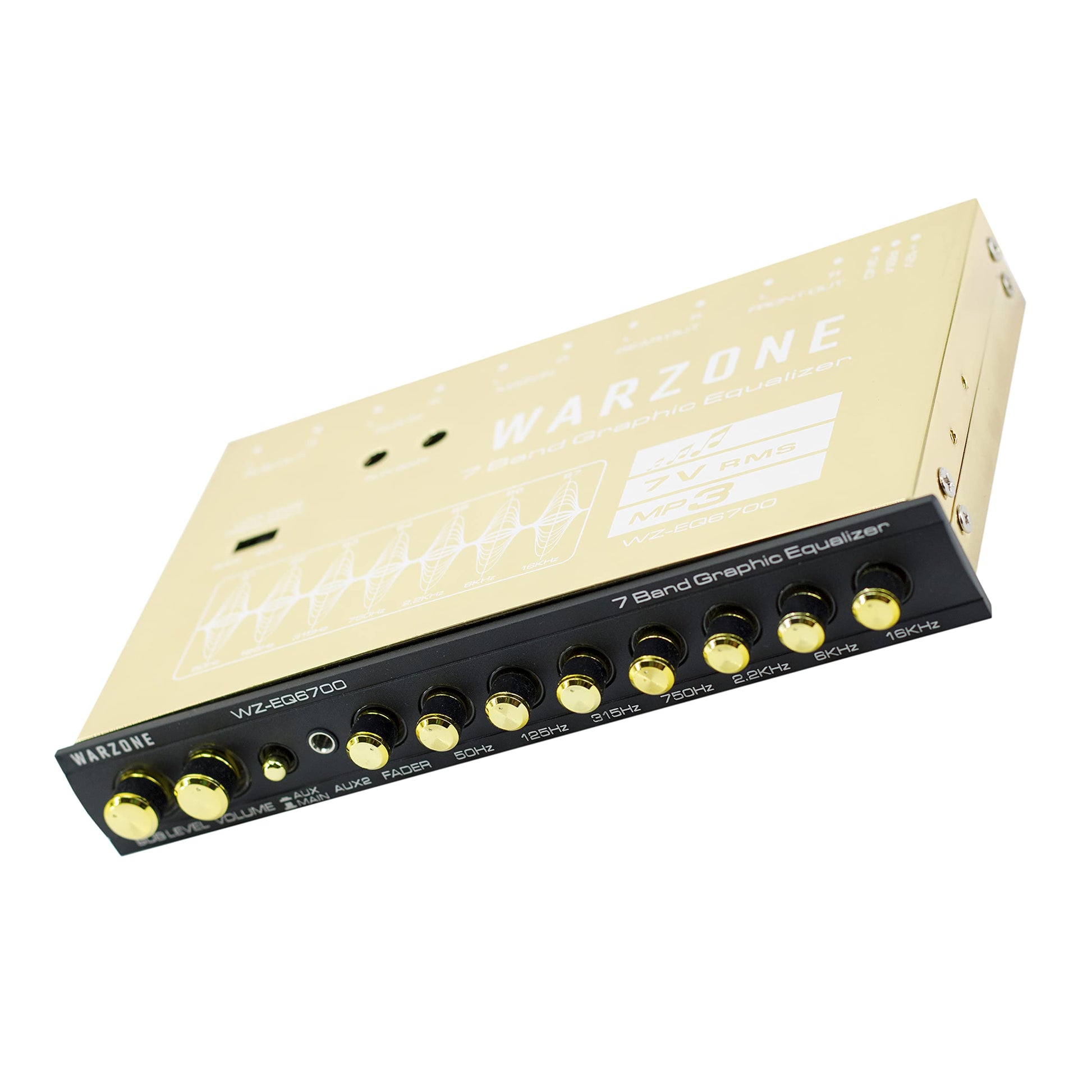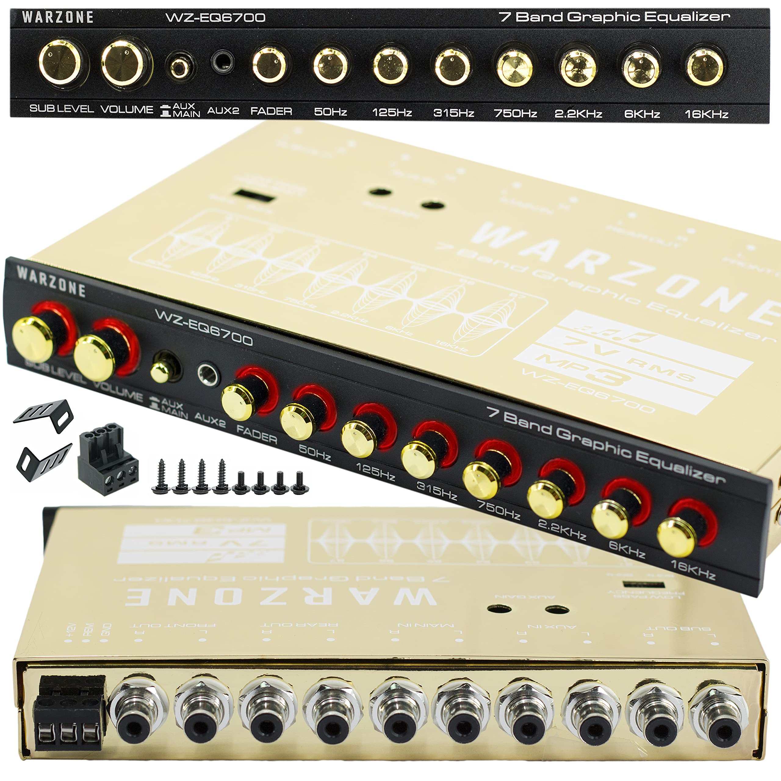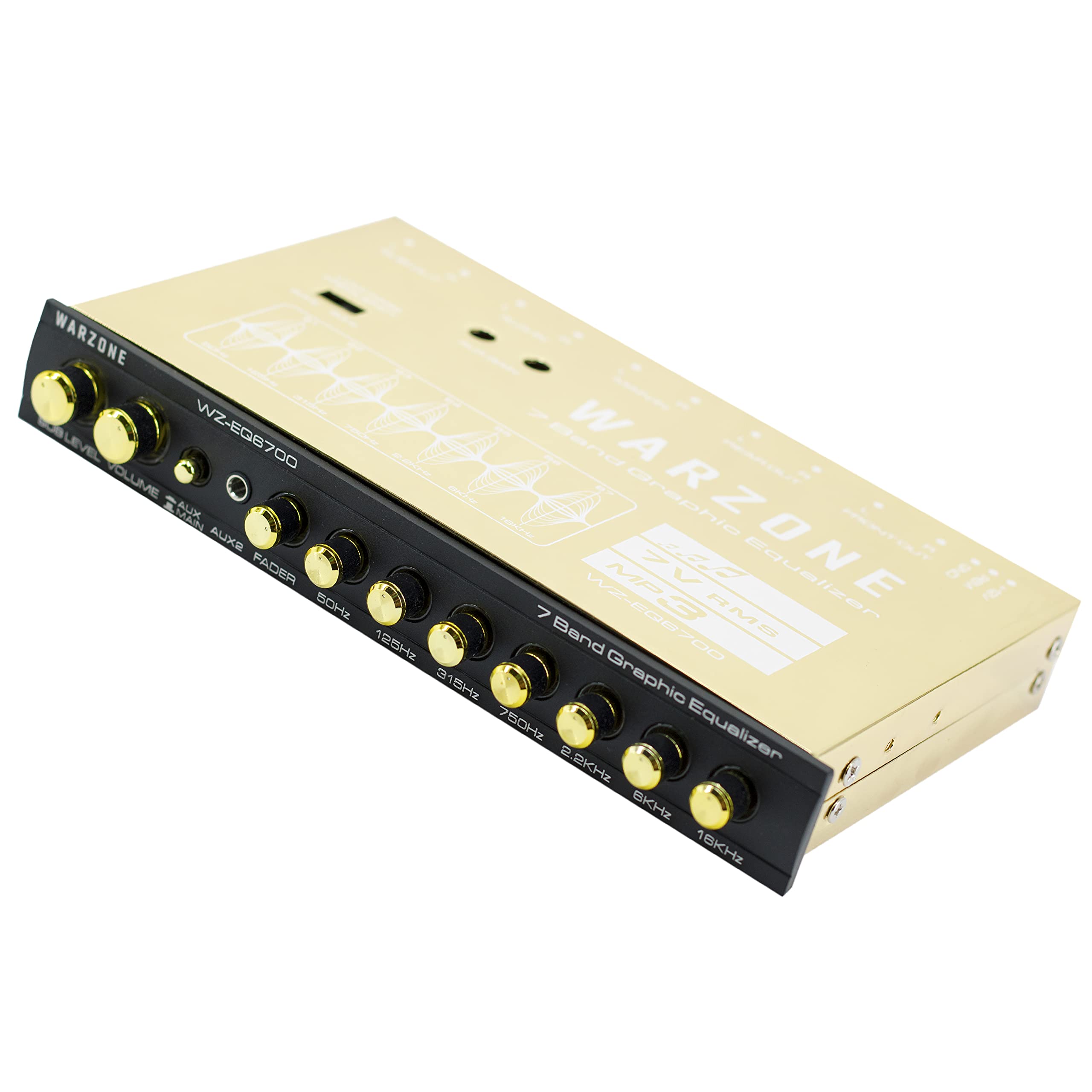 The Gravity Warzone EQ6700 is a 1/2 Din 7-Band Car Audio Equalizer designed to elevate your car, boat, or motorcycle's audio system. With adjustable frequencies at 50Hz, 125Hz, 315Hz, 750Hz, 2.2kHz, 6kHz, and 16kHz, you can fine-tune your audio for an immersive listening experience. The subwoofer output includes a built-in 18dB per octave electronic crossover at 60Hz or 90Hz for optimized bass control. Its extended frequency response from 20Hz to 30kHz ensures crystal-clear sound, while the gold-plated RCA connectors deliver superior signal quality.