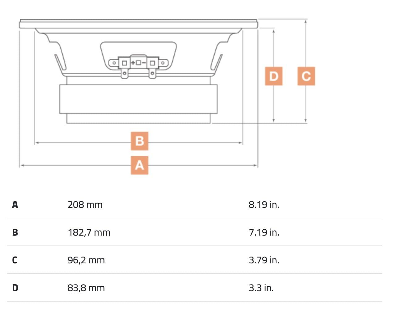 8” (200mm) SPL midrange speaker drivers, 4-ohm impedance