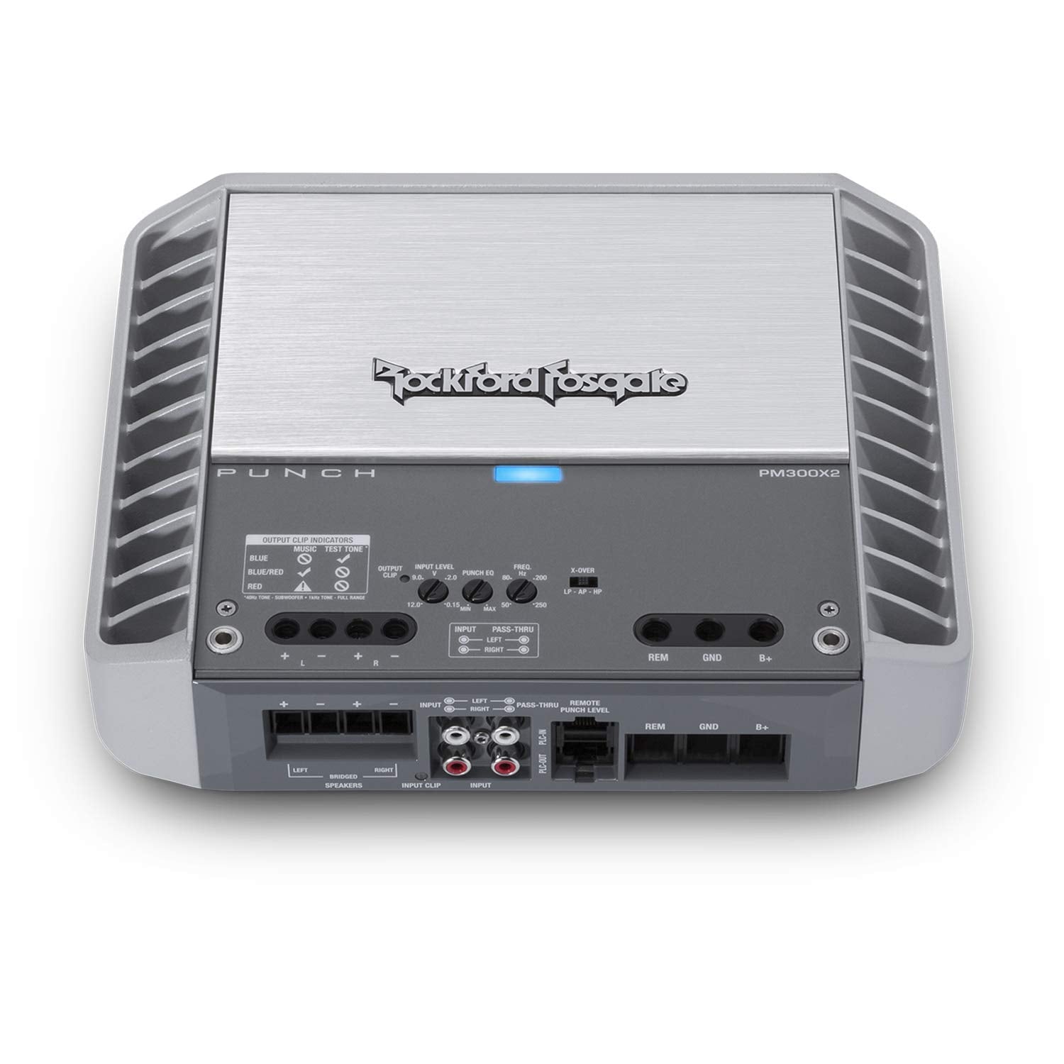 The PM300X2's compact form factor (2.4" x 7.8" x 9.90") doesn't compromise on power. Equipped with Class A/B technology, this amplifier delivers high dynamic power while maintaining efficiency and minimizing distortion. Whether you're on the water or on the road, the PM300X2 is engineered for versatility, offering high-level input capability, an Auto Turn-On circuit, and a built-in Punch EQ with an +18dB boost at 45Hz for customized sound performance.
