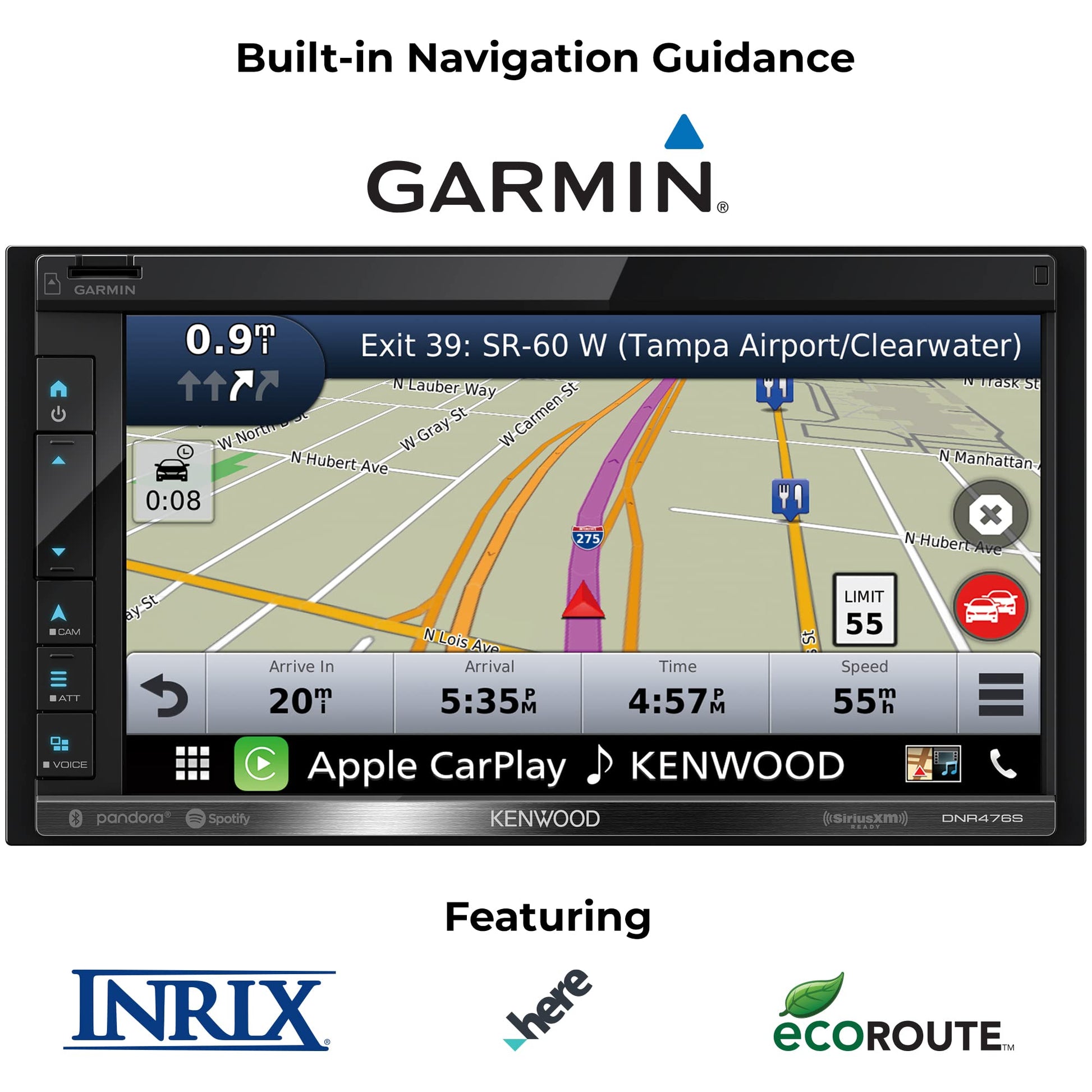 The Kenwood DNR-476S multimedia receiver delivers a seamless in-car experience, blending advanced technology with user-friendly features. With Apple CarPlay and Android Auto, it integrates effortlessly with smartphones, enabling hands-free calls, navigation, and app usage. Equipped with Garmin navigation software featuring Lane Assist, this receiver provides clear guidance on the road. The high-resolution audio capabilities offer pristine sound quality, ensuring a premium listening experience.