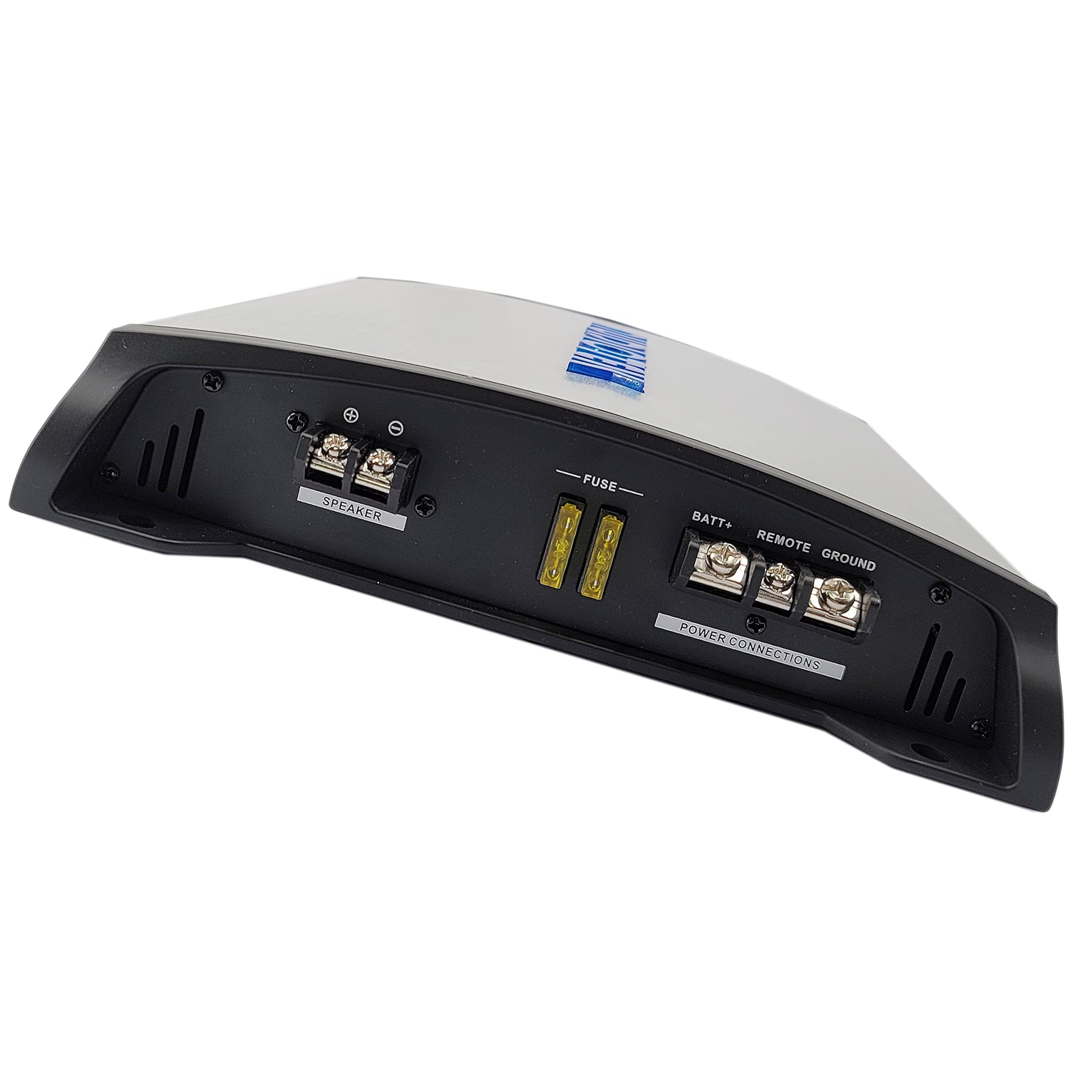 Constructed with a heavy-duty aluminum alloy heat sink, the Audiotek AT-4000M amplifier is built to handle high power levels while maintaining optimal operating temperature. This ensures that the amplifier remains cool during extended use, preventing any potential overheating issues. The tri-mode capability allows for flexible configurations with multiple speakers or subwoofers, making it easy to customize your car’s sound system. The continuous low-pass crossover (ranging from 0 to +18dB) allows precise control of bass frequencies, ensuring deep, clean bass that complements the rest of your audio system.