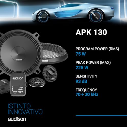 The Audison APK 130 Prima Series 5.25" component speaker set delivers precise and dynamic sound with crisp highs and balanced mids. Featuring AP 1 tweeters and AP 5 woofers, this 2-way system ensures clear vocals, detailed instrumentals, and a rich, immersive audio experience in compact vehicle locations.
