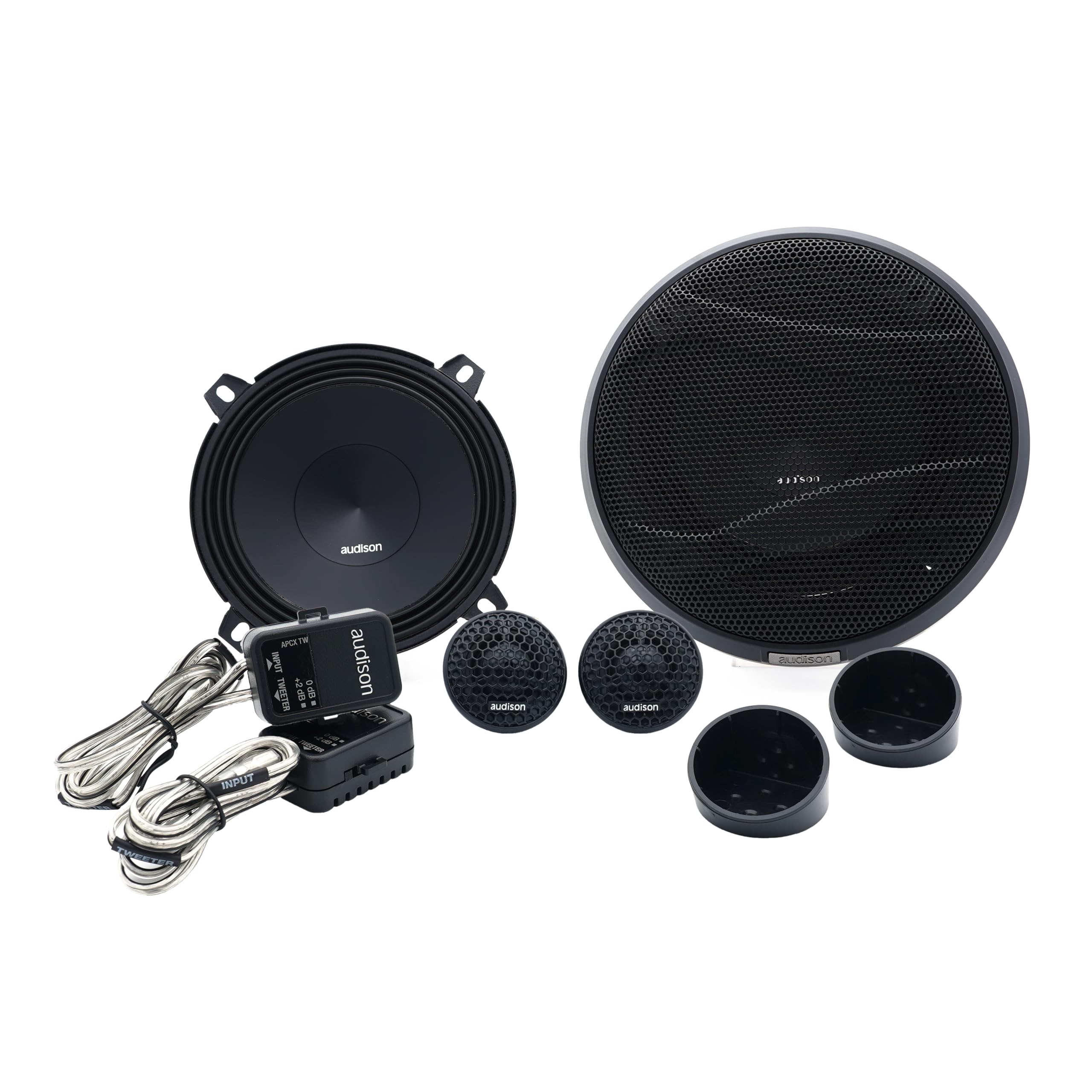 Designed to fit standard 5.25" mounting locations, the APK 130 system includes protective grilles and compact housings for versatile installation. Ideal for OEM replacements or aftermarket upgrades, this component set allows optimal placement of tweeters and woofers for professional-grade audio performance.