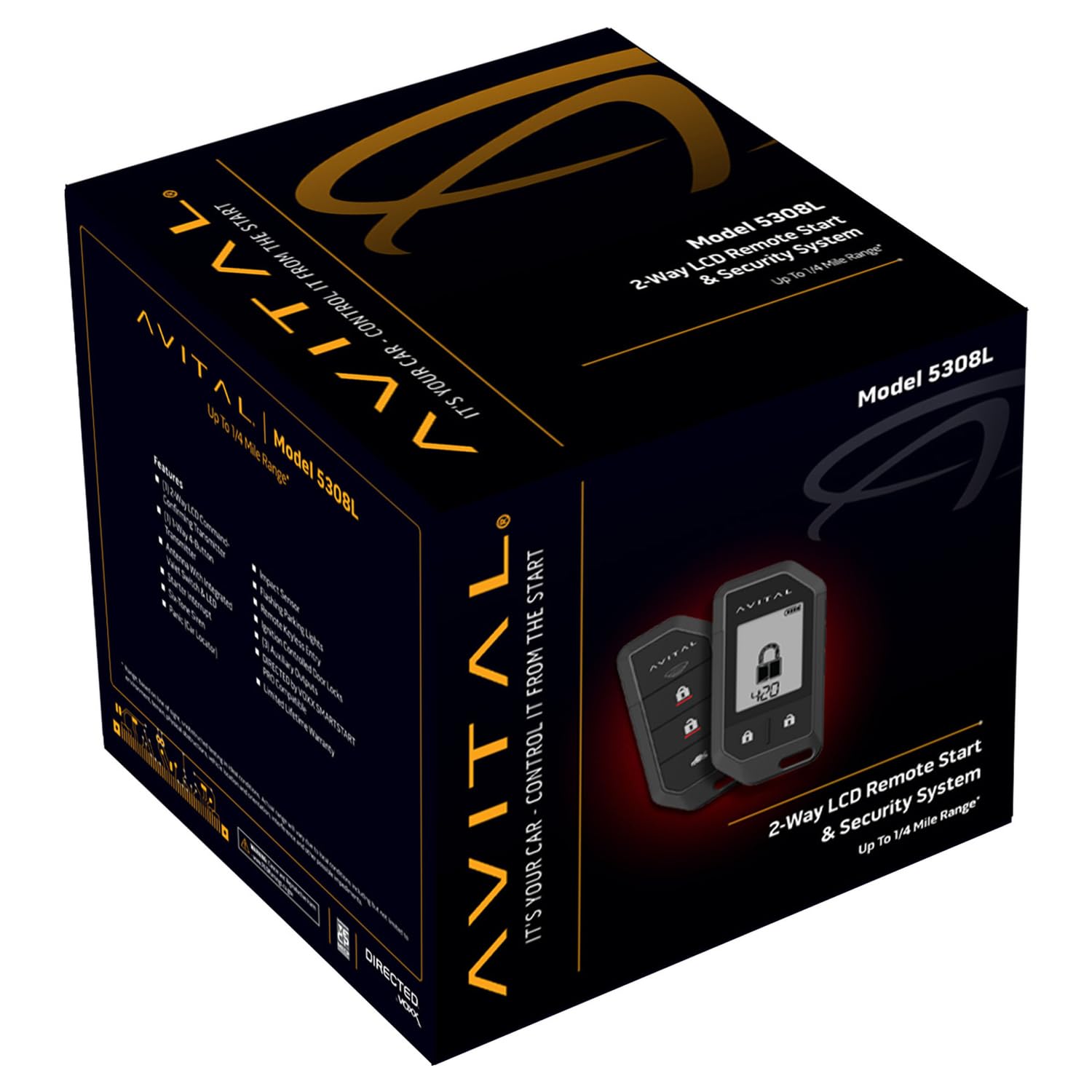 The 2-way confirming LCD transmitter and 1-way 4-button transmitter give you reliable control up to one mile away. With remote keyless entry, ignition-controlled locks, and three auxiliary outputs, the Avital 5308L provides a seamless upgrade to modern vehicle convenience.