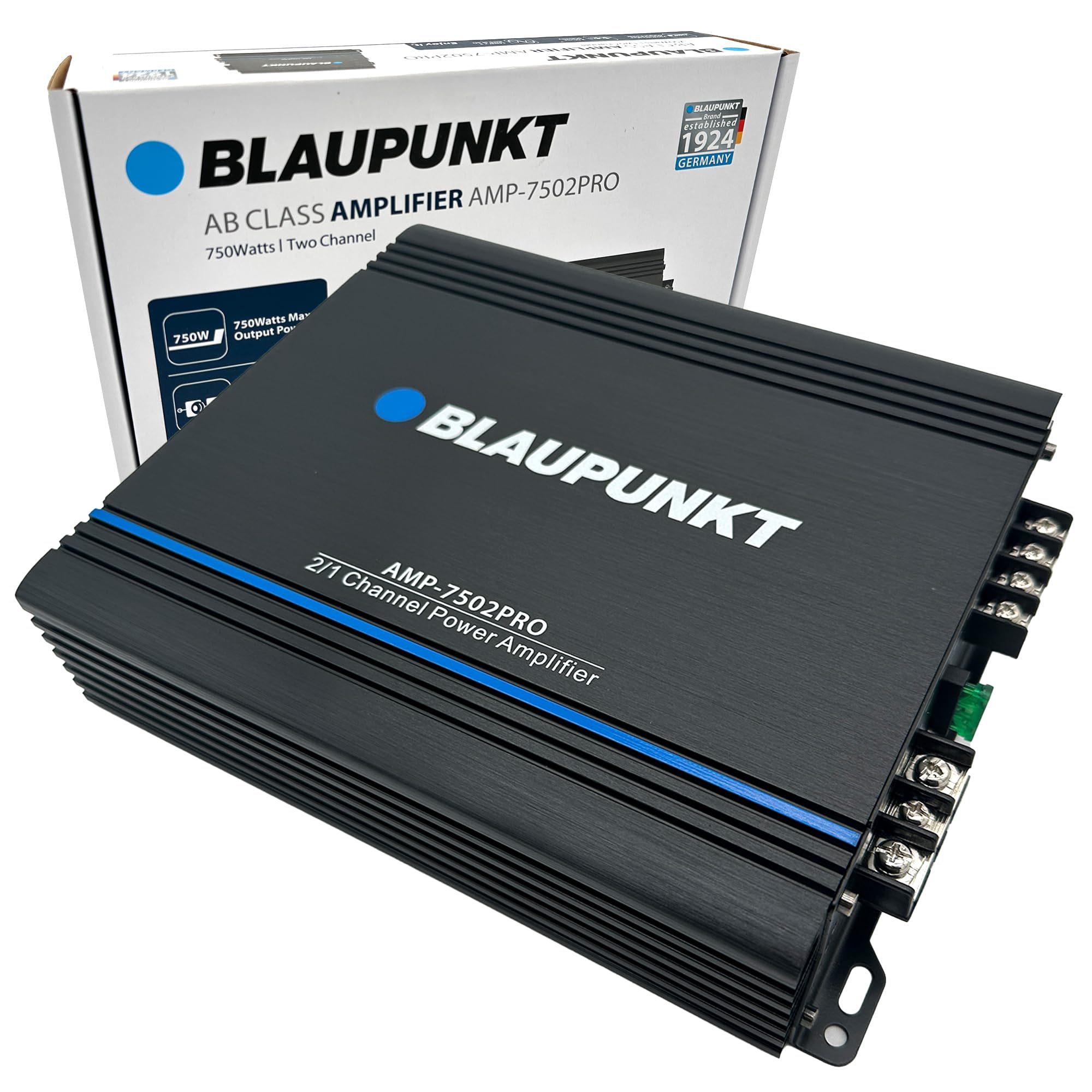 Elevate your car audio system with the Blaupunkt AMP7502PRO 2-Channel Amplifier. Delivering a maximum power output of 1500 watts, this amplifier ensures clear and powerful sound that enhances every note and beat. With RMS power ratings of 325W x 2 at 2 ohms and 160W x 2 at 4 ohms, it provides exceptional versatility and performance, allowing you to create a fully immersive listening experience.