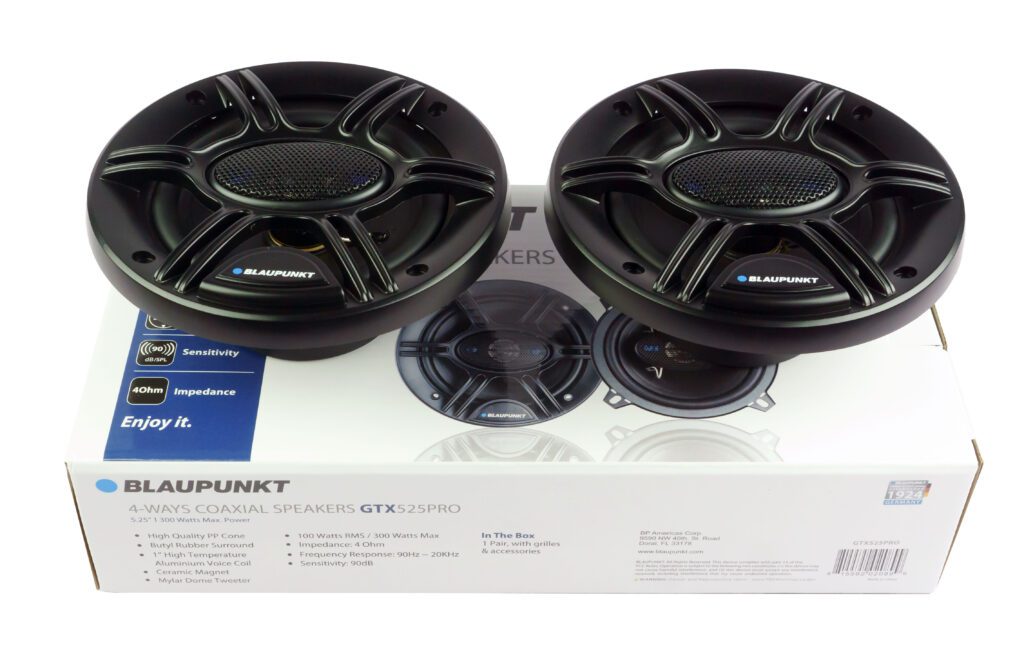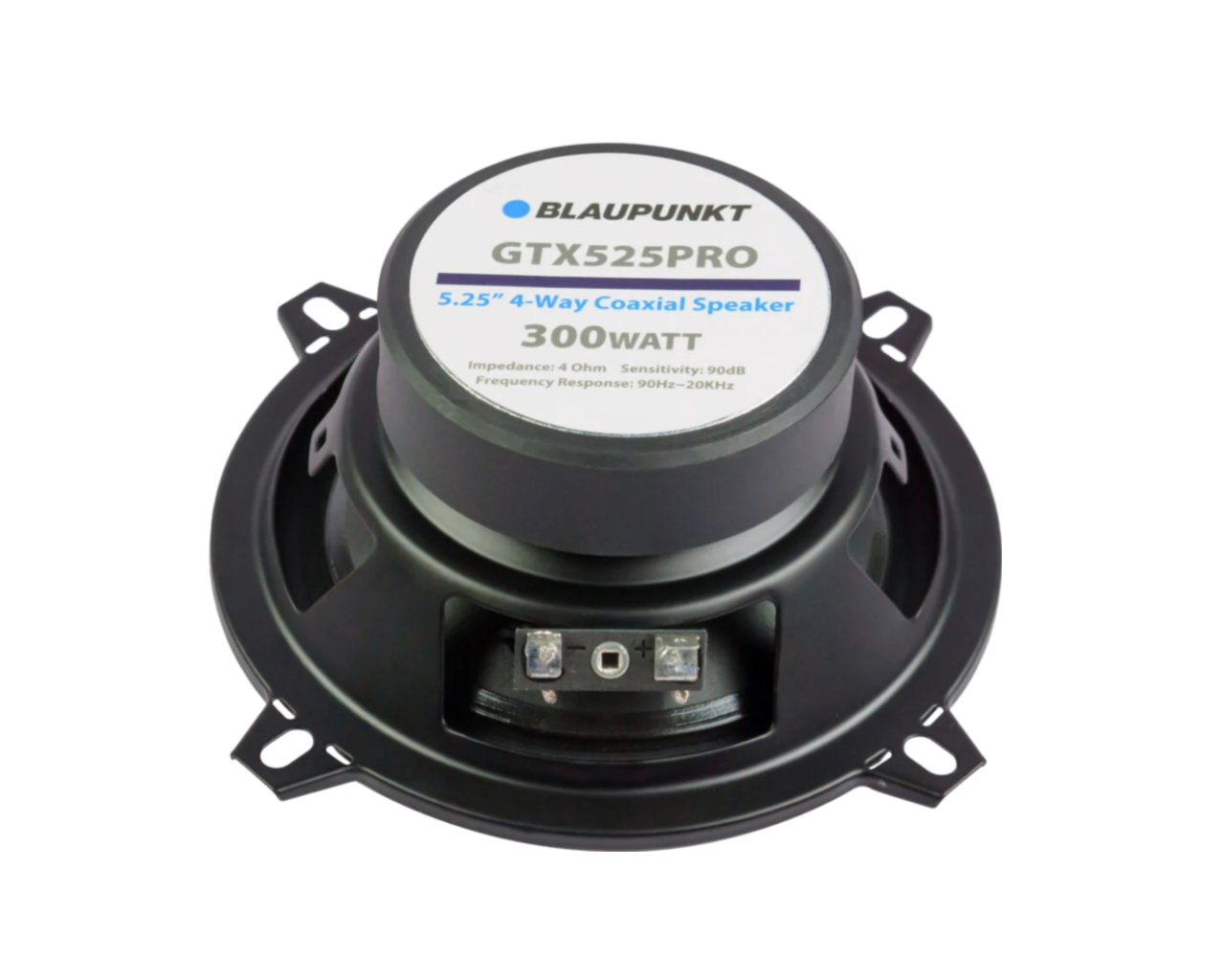 The Blaupunkt GTX-525PRO 5.25" 4-Way Car Speaker offers a premium listening experience with its advanced 4-way design. It incorporates a polypropylene cone, foam surround, and Mylar dome tweeter to produce clear highs, detailed mids, and deep bass, providing a full-range audio experience. With a frequency response of 90Hz to 20kHz, this speaker ensures that every note is delivered with clarity, whether you're listening to bass-heavy tracks or crisp vocals.