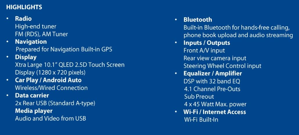 - Rear View Camera Input: Compatible with rearview cameras for added safety and convenience when reversing.