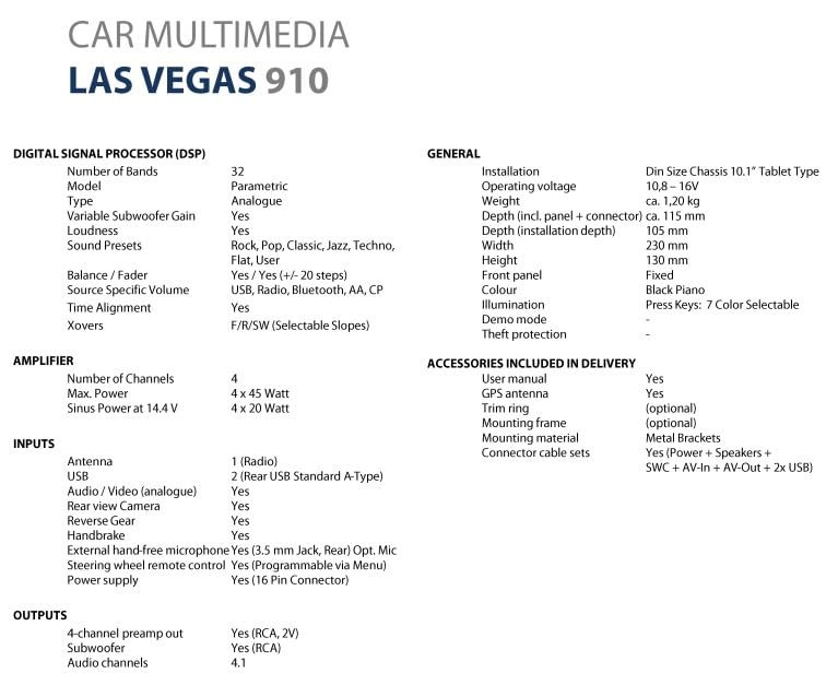 Navigate with ease thanks to the LASVEGAS910's built-in GPS, offering reliable and accurate turn-by-turn directions. The system is ready for navigation apps, ensuring you never get lost. The 32-band DSP equalizer and 4x45W maximum power output provide powerful, customizable sound. Enjoy your favorite music, podcasts, and videos in high-quality audio while on the road, with the ability to fine-tune your audio settings for the perfect listening experience.