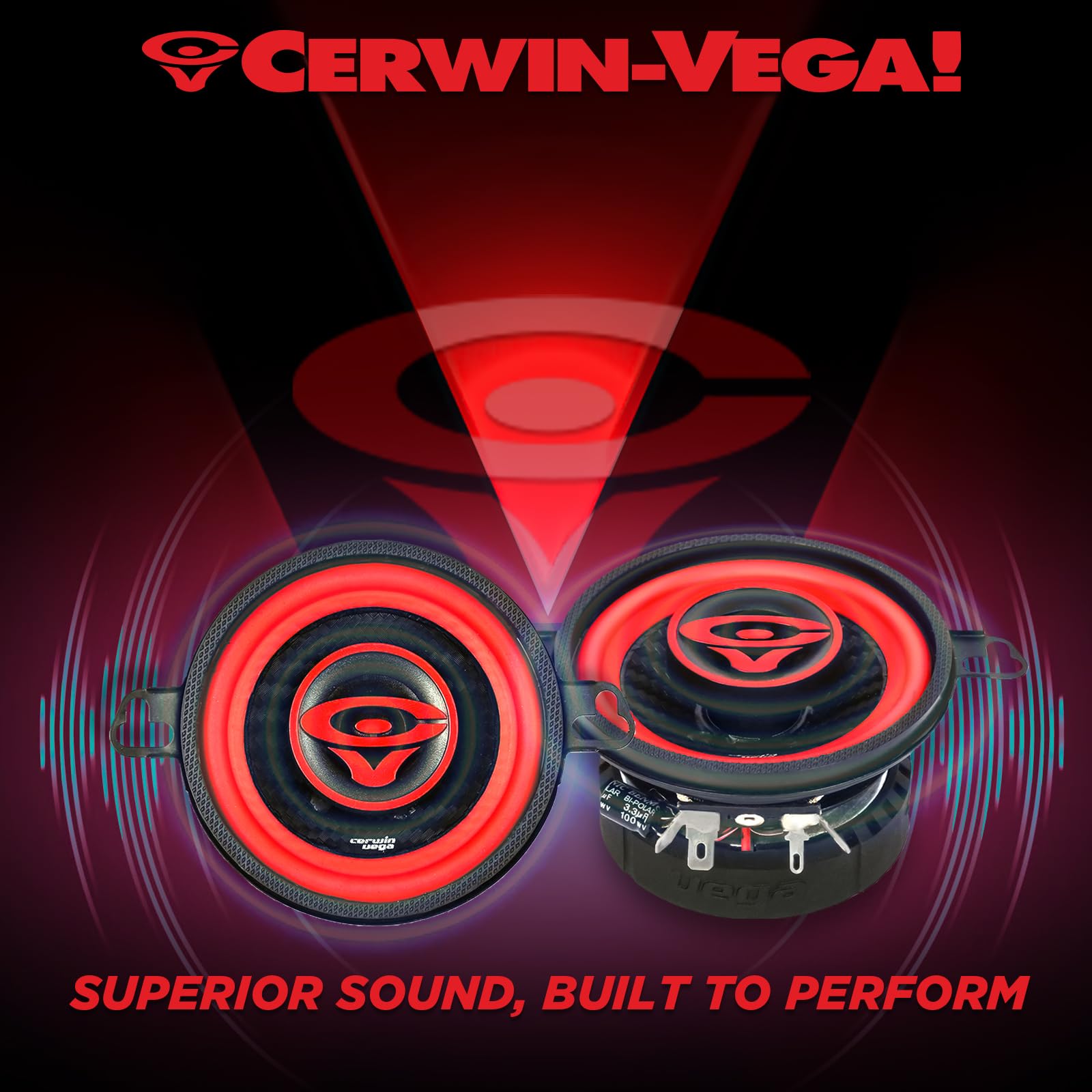 The Cerwin Vega V3 2025 Edition delivers premium-quality audio in a compact 3-inch coaxial design. Ideal for cars, trucks, and SUVs, these full-range speakers reproduce clear highs, detailed mids, and balanced lows, providing a rich and immersive in-vehicle listening experience.