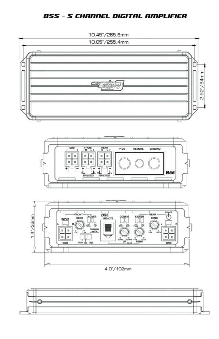 Featuring adjustable low-pass and high-pass filters, variable gain control, and bass boost, the B55 allows precise tuning for each channel. The amplifier’s high-efficiency Class-D circuitry provides maximum output with minimal heat, ensuring clean, low-distortion audio for all connected components.