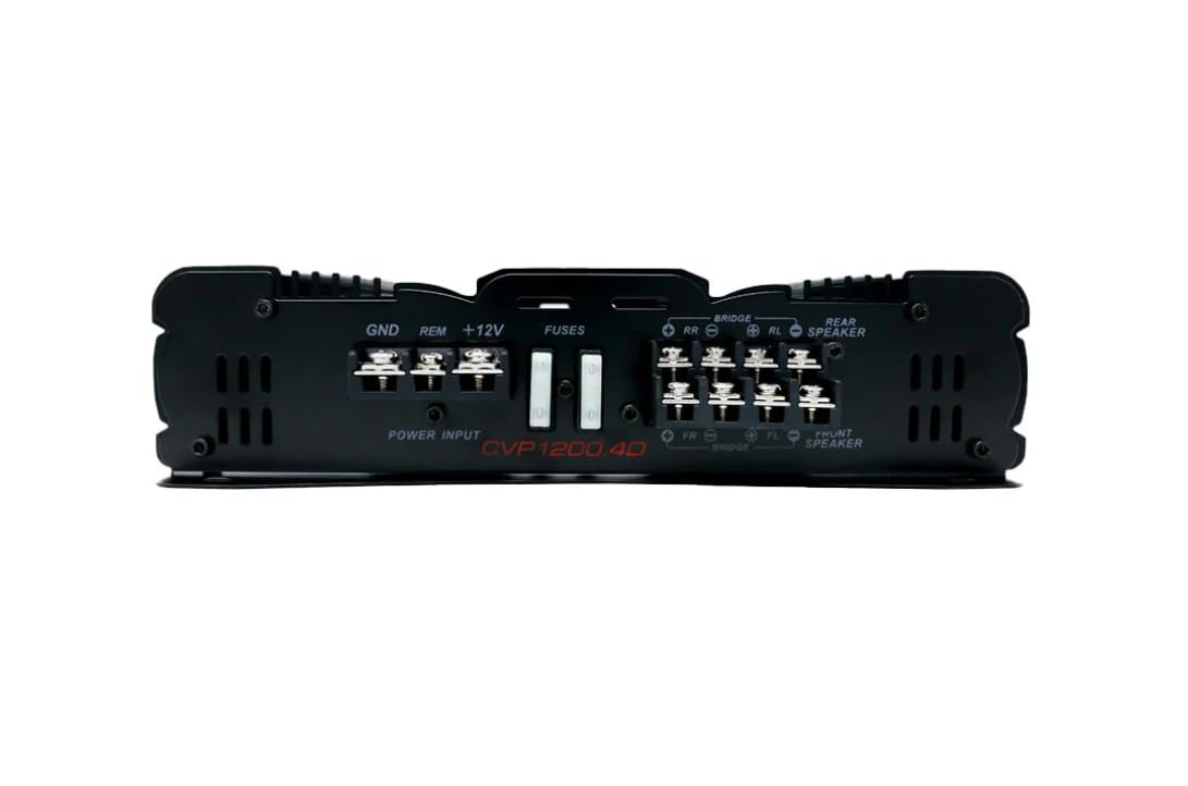 The Cerwin Vega CVP1200.4D delivers 1200W of clean, distortion-free power across four channels, making it ideal for front and rear full-range speakers. Its Class AB design combines high-efficiency amplification with warm, natural sound characteristics, ensuring a balanced audio experience. Compact and robust, this amplifier integrates easily into any car audio setup, providing precise audio reproduction, stable power output, and reliable performance for both factory upgrades and custom installations.