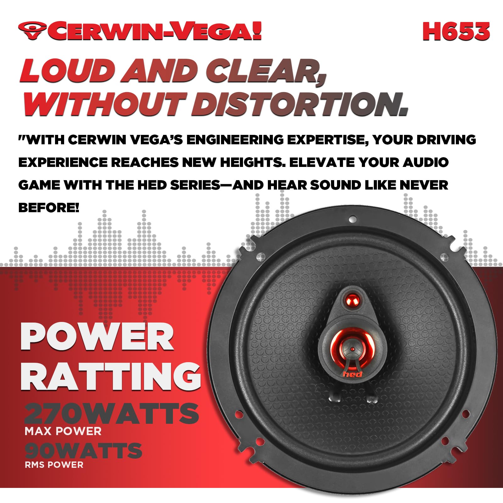Featuring Cerwin Vega’s HED technology, the H653 incorporates a reinforced multi-layer cone for midbass accuracy, a midrange driver, and a high-frequency tweeter for detailed highs. This 3-way design provides precise frequency separation, low distortion, and high sensitivity. Durable materials and robust construction ensure long-term performance even at higher volume levels, making the H653 ideal for enthusiasts and casual listeners alike.