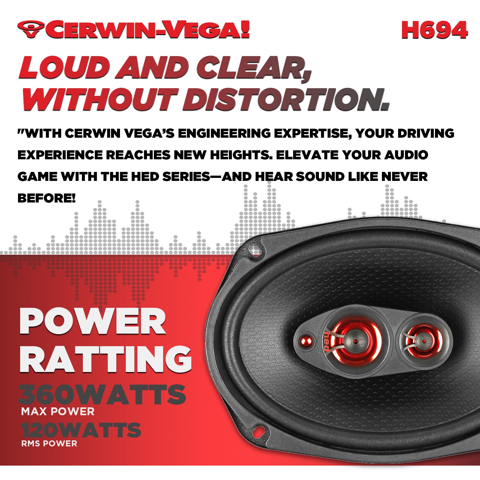 The Cerwin Vega H694 HED 2025 Edition 6.94” 2-Way Coaxial Speakers deliver rich, dynamic full-range audio with punchy midbass, detailed mids, and crisp highs. Designed for vehicles with 6.94” speaker locations, these speakers provide a powerful upgrade over factory systems. Perfect for all music genres, the H694 ensures distortion-free, immersive sound for every drive.