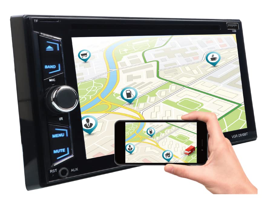 Gravity VGR-D910BT 6.2” Double DIN Car Stereo | 200W HD Touchscreen Receiver with DVD/CD/MP3/FM/USB/SD, Bluetooth, Steering Wheel Control & Multi-Color Illumination