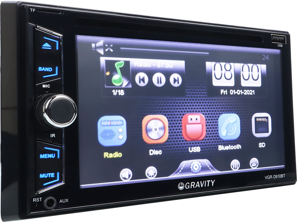 Upgrade your driving experience with the Gravity VGR-D910BT, a high-performance 6.2” Double DIN car stereo receiver designed for exceptional entertainment and convenience. Featuring a high-resolution touchscreen TFT/LCD display, this stereo offers a user-friendly interface for seamless music streaming, hands-free calling, and video playback. With 200W of power output and an 8-band EQ, enjoy crisp, customizable sound. The built-in Bluetooth function allows effortless wireless connectivity with smartphones, ensuring a smooth and safe driving experience.