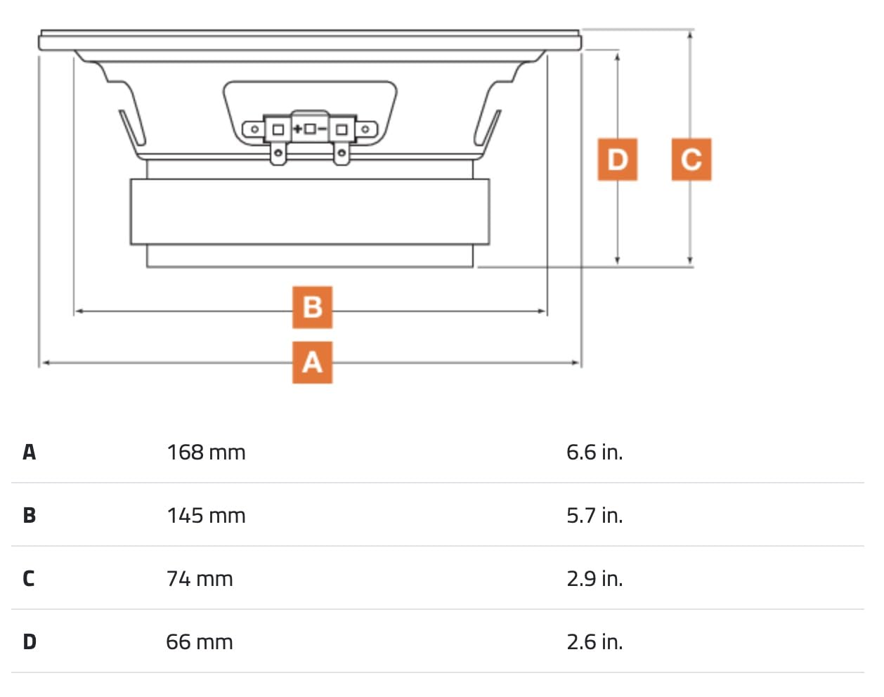 6.5” (165mm) SPL midrange speaker drivers, 4-ohm impedance