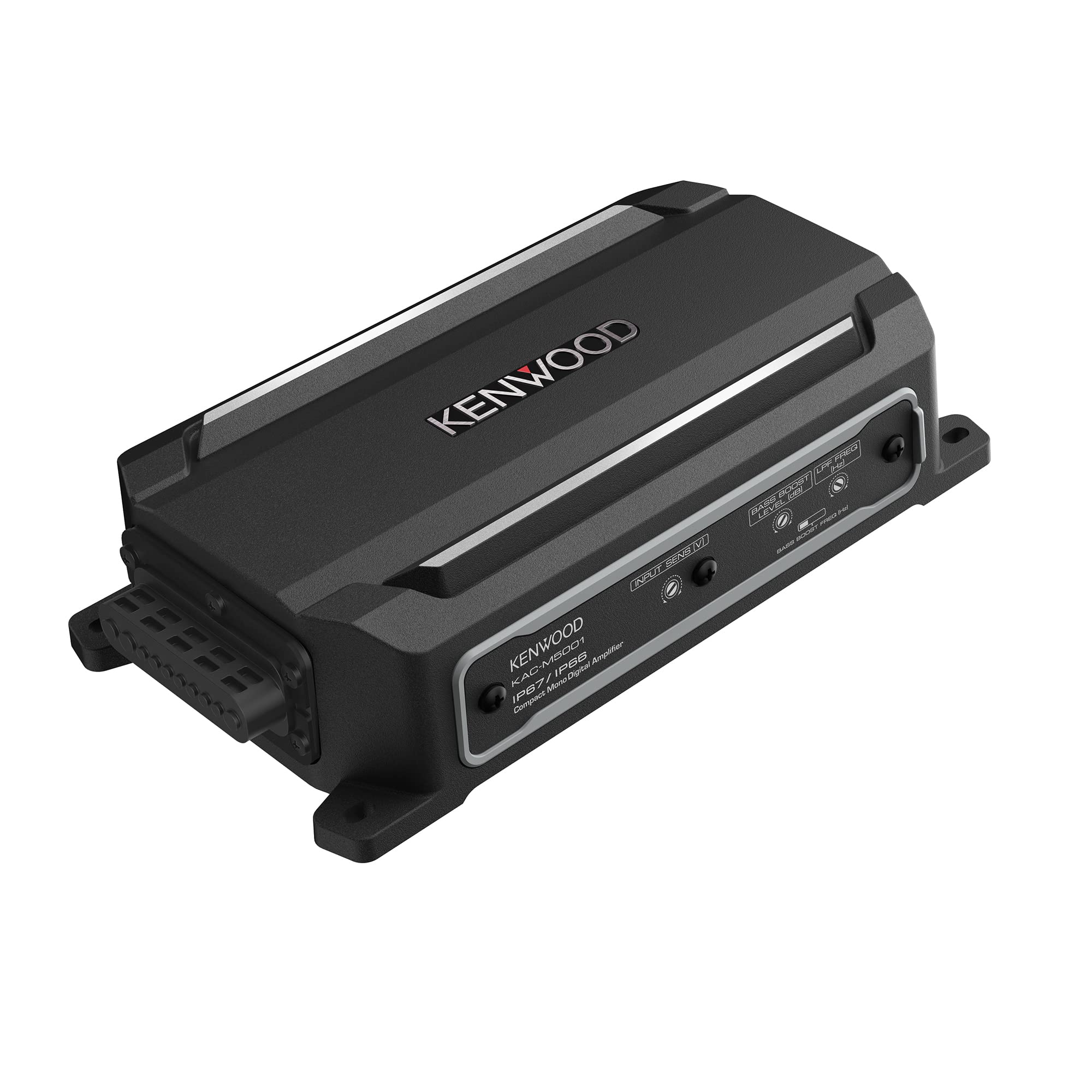 The Kenwood KAC-M5001 Mono Class D Digital Amplifier is built to deliver high-quality sound and unmatched durability in outdoor and marine environments. With a maximum power output of 600 watts (300W RMS), this amplifier is designed to bring clarity and power to your subwoofer, enhancing the low-end impact of your favorite tracks. Rated IPX6, IPX7, and IP6X, it is waterproof, dustproof, and corrosion-resistant, making it perfect for boats, ATVs, UTVs, and motorcycles. Its rugged aluminum chassis and Drain Tunnel Structure protect against saltwater and sand buildup, while advanced vibration resistance ensures stable performance even on rough terrain.