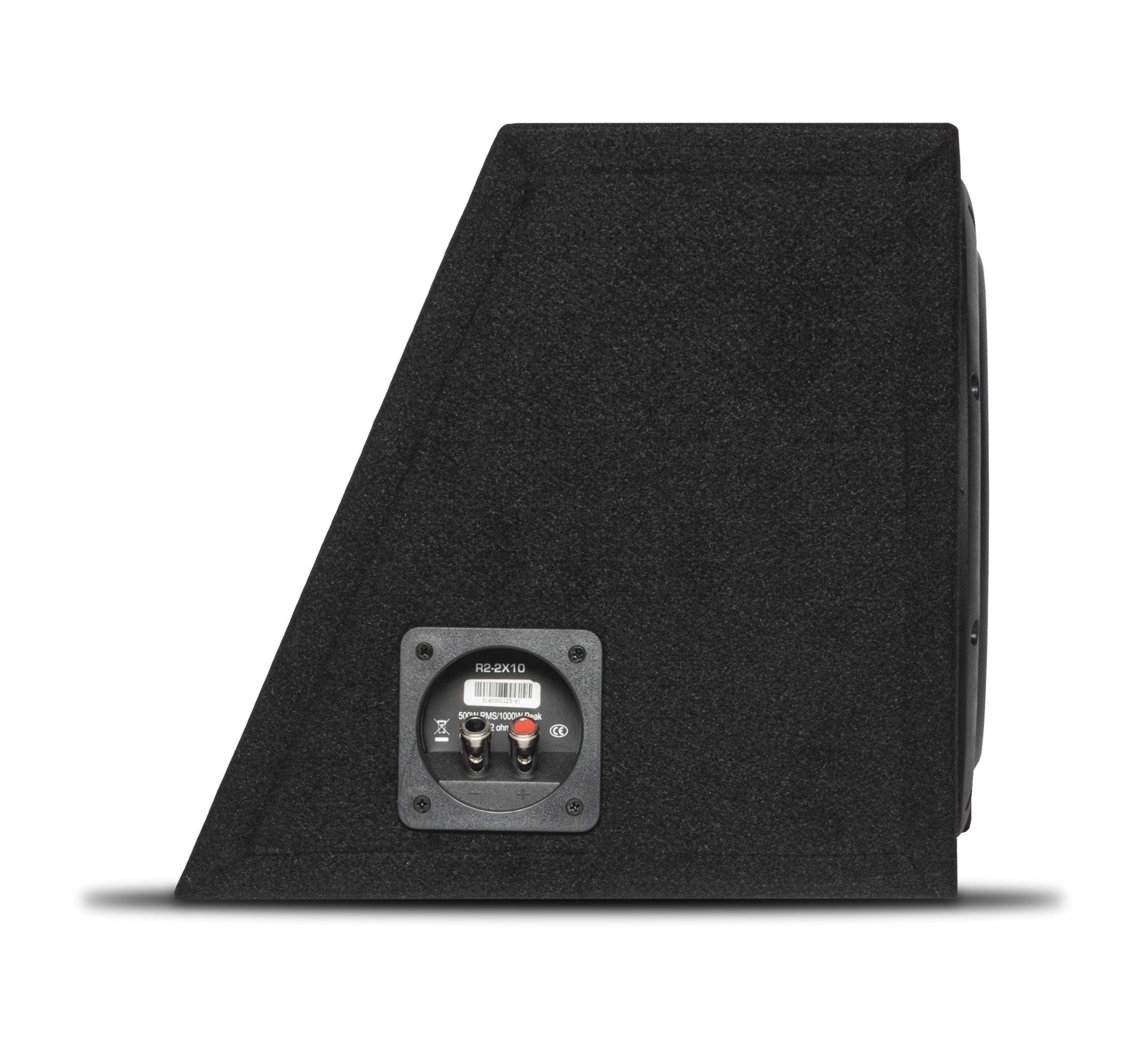 Constructed with durable 5/8” MDF and wrapped in high-density carpet, the R2-2X10 offers superior durability and a sleek appearance. The sealed design minimizes unwanted resonance, while the spring-loaded high-current binding posts simplify installation. Built with Rockford Fosgate’s renowned quality, this enclosure is designed to withstand the rigors of everyday use while delivering consistent performance.