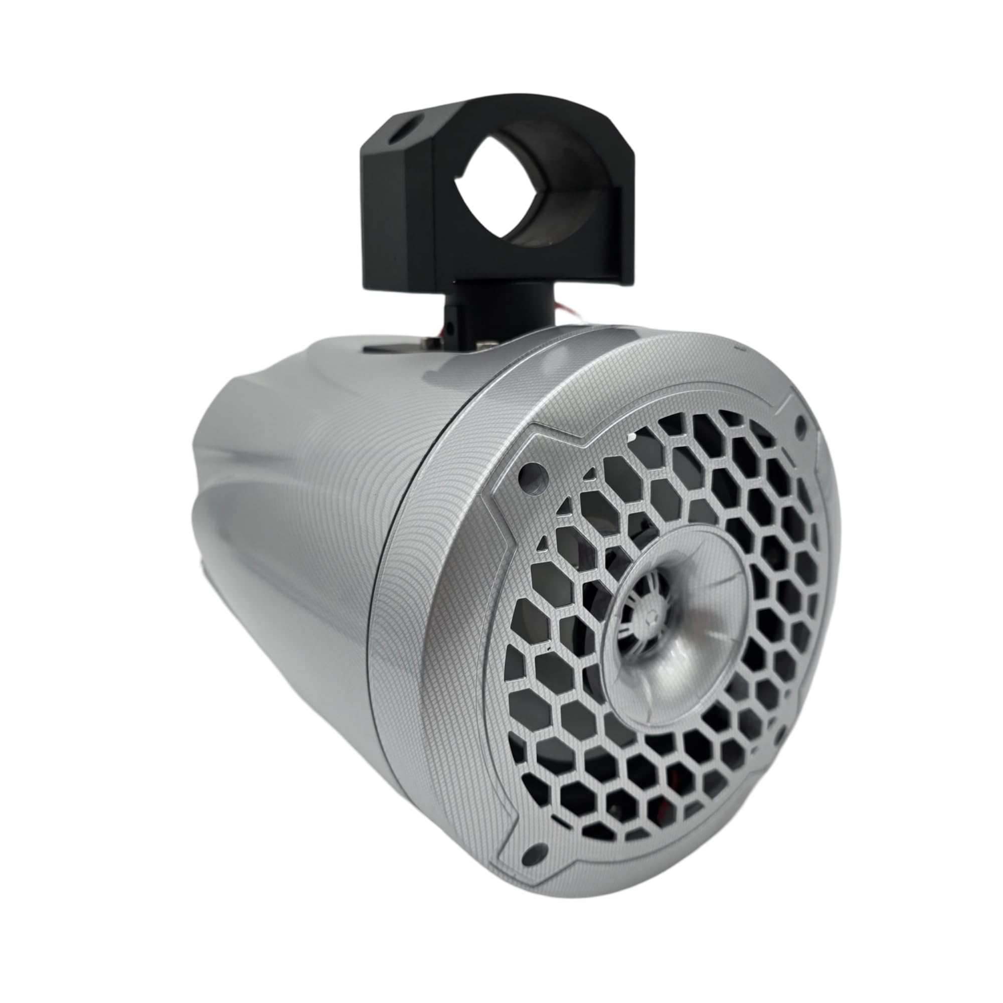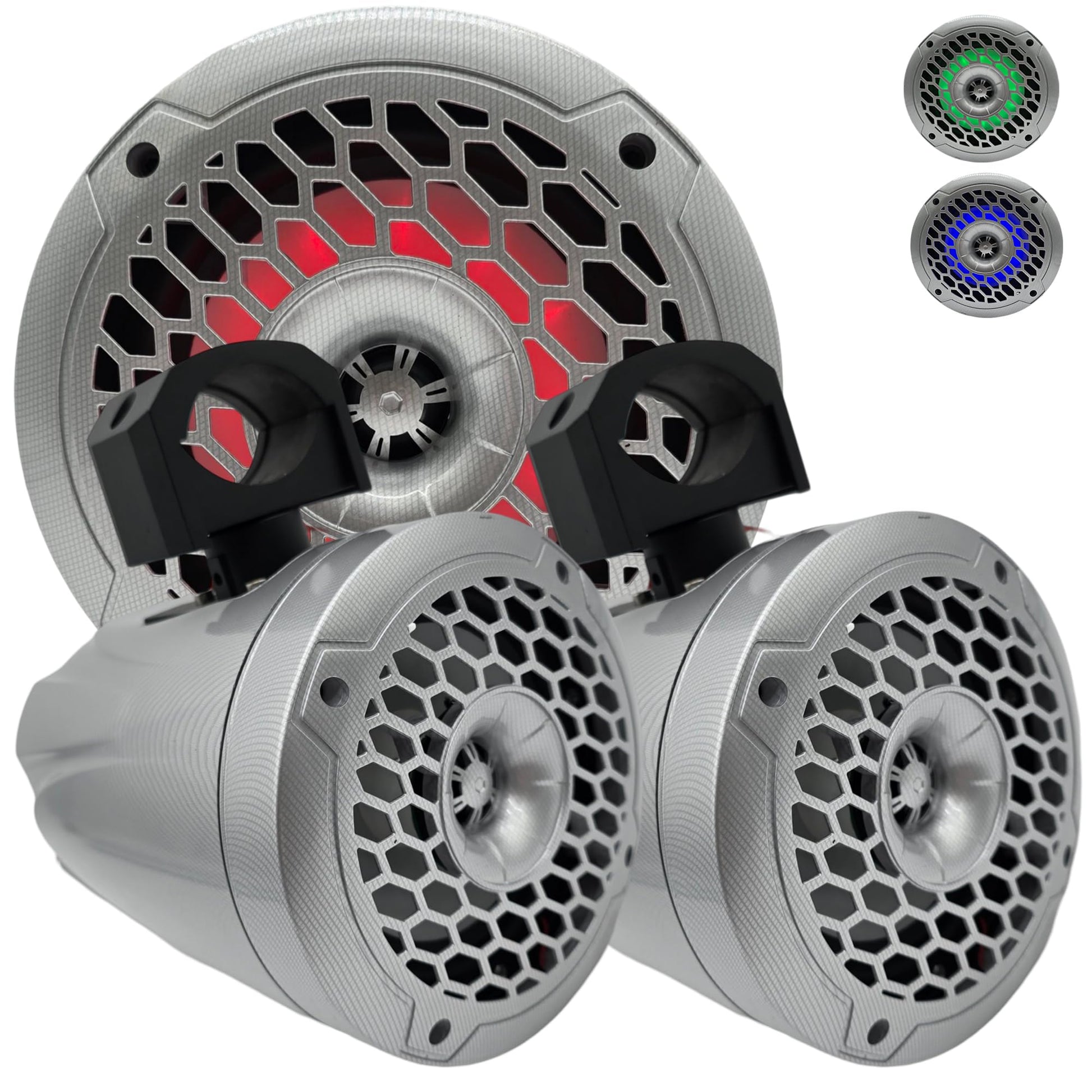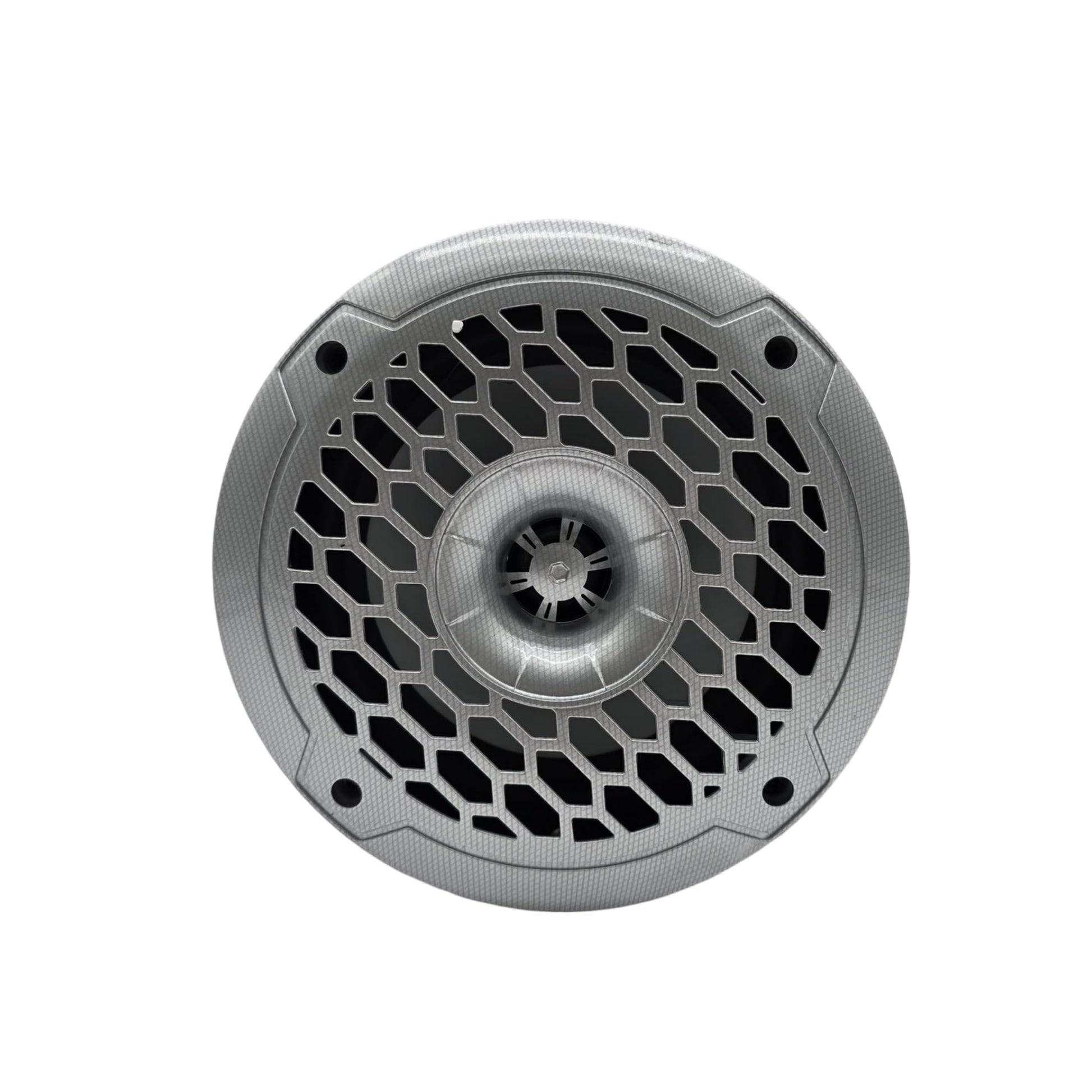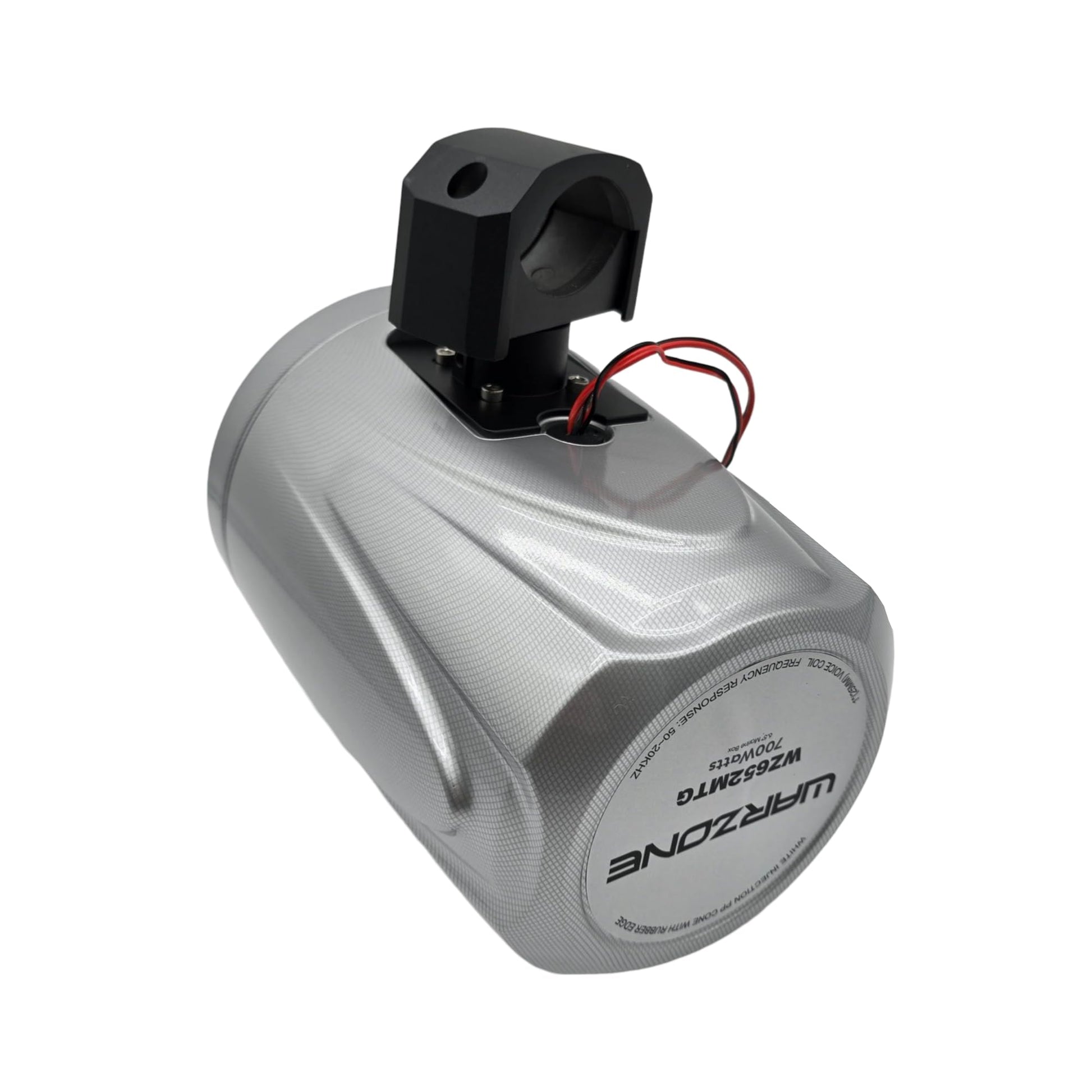 Details: Stylish Marine Speakers with RGB LED Lighting and Gray Finish The Warzone WZ652MTG 6.5-Inch Marine Box Speakers are designed to combine high-quality sound with sleek aesthetics, making them a perfect addition to your boat or outdoor audio system. Delivering a peak power of 700W and a rated power of 300W, these speakers provide robust, clear, and dynamic audio performance. The RGB LED lighting enhances any setup with its vibrant colors, creating an eye-catching and personalized experience. Durable Gray Design Built for Marine Conditions Constructed with a gray polypropylene injection cone and rubber edges, the WZ652MTG is built to withstand the challenges of marine and outdoor environments. Its sturdy black plastic basket adds extra durability, while the 12oz strontium magnet and 1-inch voice coil deliver precise and efficient sound reproduction. The 38mm dome tweeter ensures crisp and clear highs, making this speaker ideal for enjoying music outdoors. Wide Frequency Range and Easy Installation With a frequency response of 50Hz-20kHz and a sensitivity of 88dB, the WZ652MTG delivers deep, resonant bass, smooth mids, and sharp highs for a balanced listening experience. These speakers are simple to install, making them an excellent choice for upgrading your boat, RV, or outdoor patio audio system. Enjoy a perfect combination of style, durability, and sound performance with the Warzone WZ652MTG.